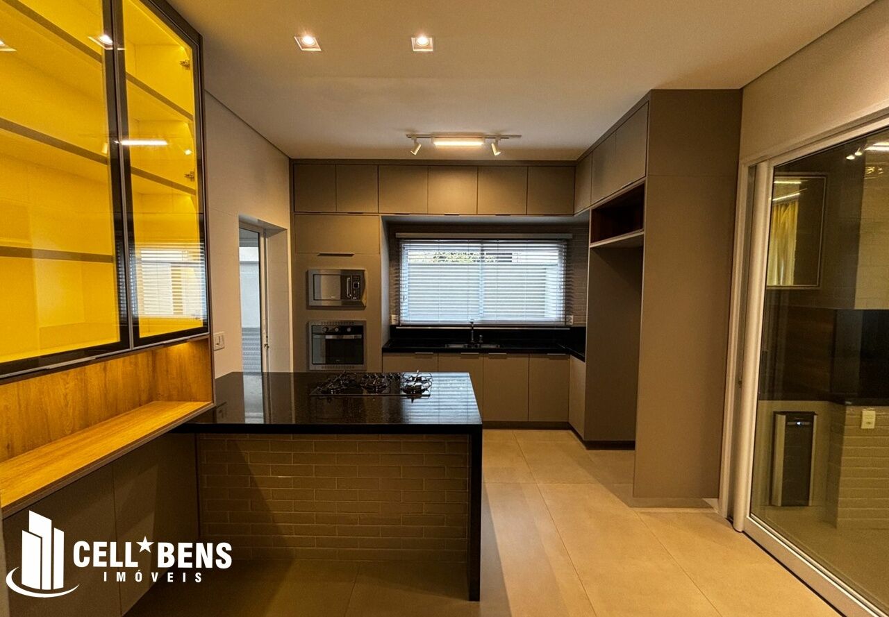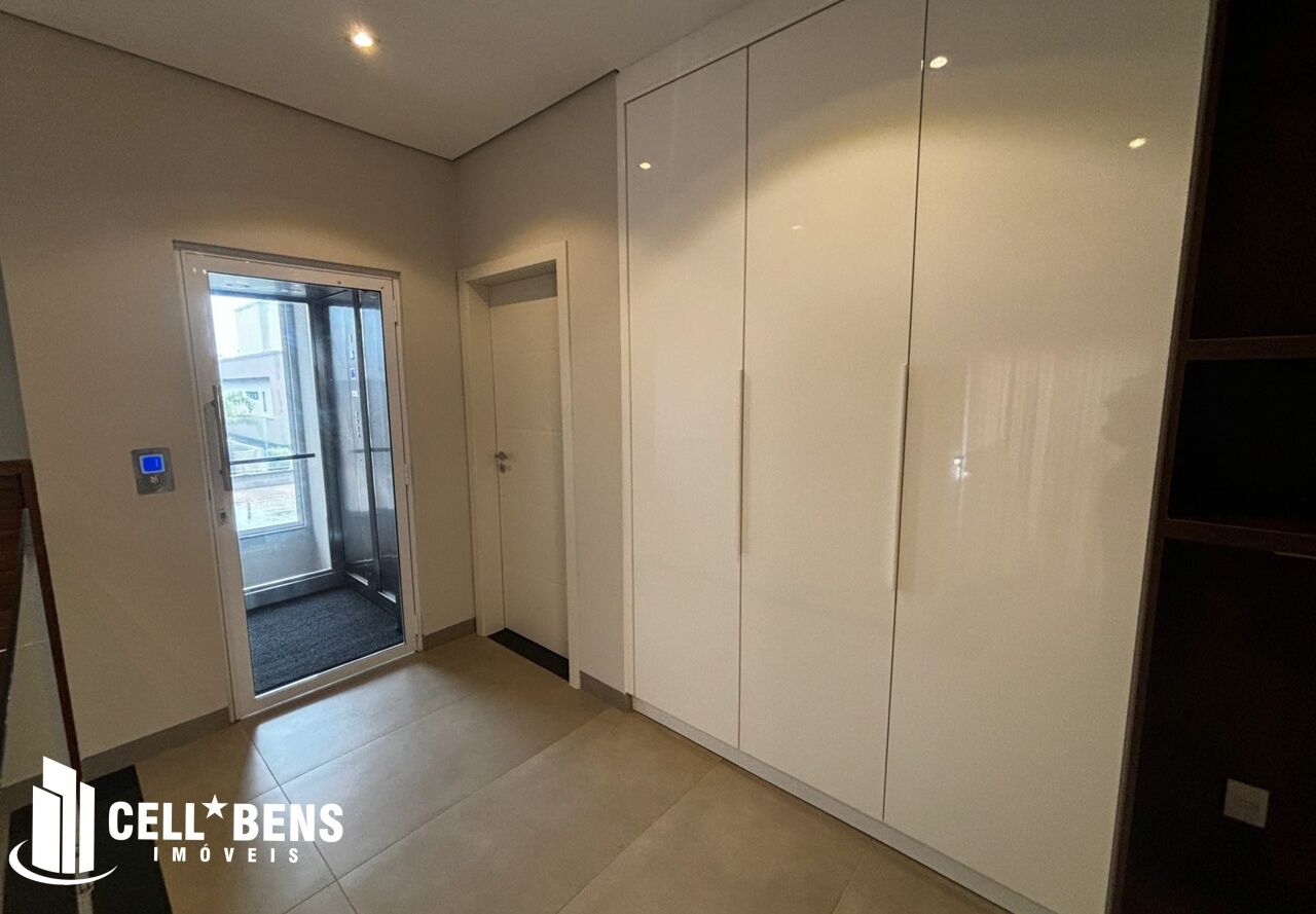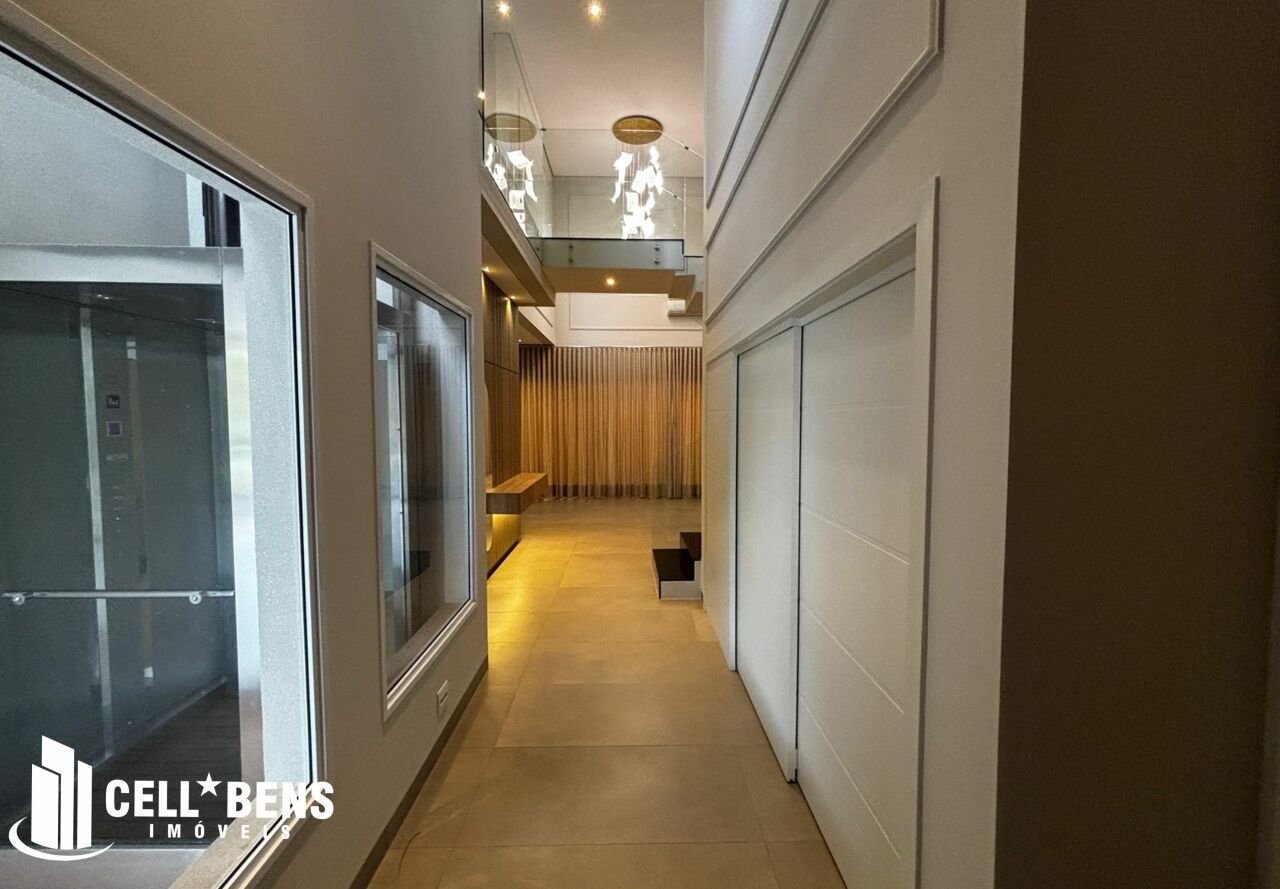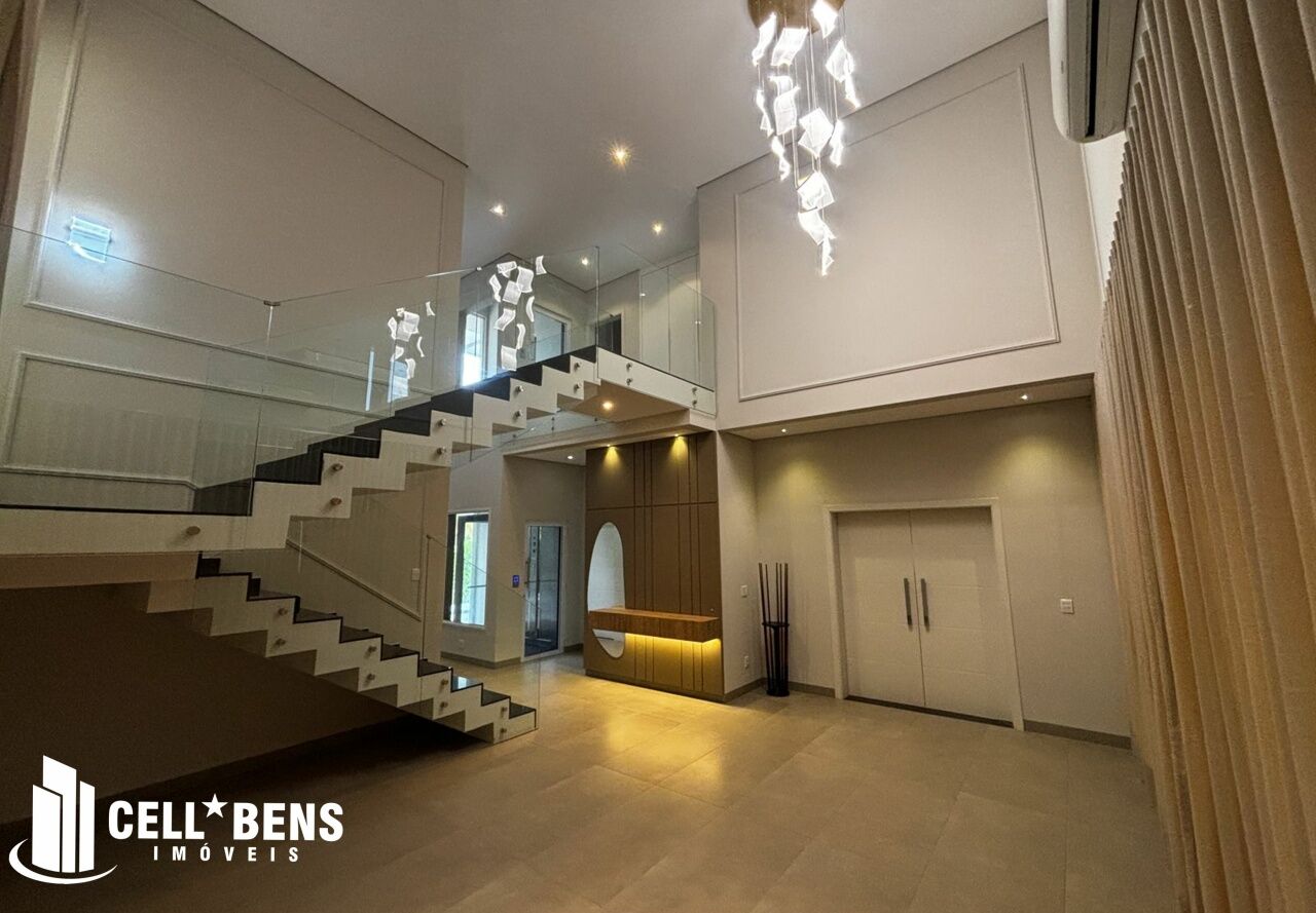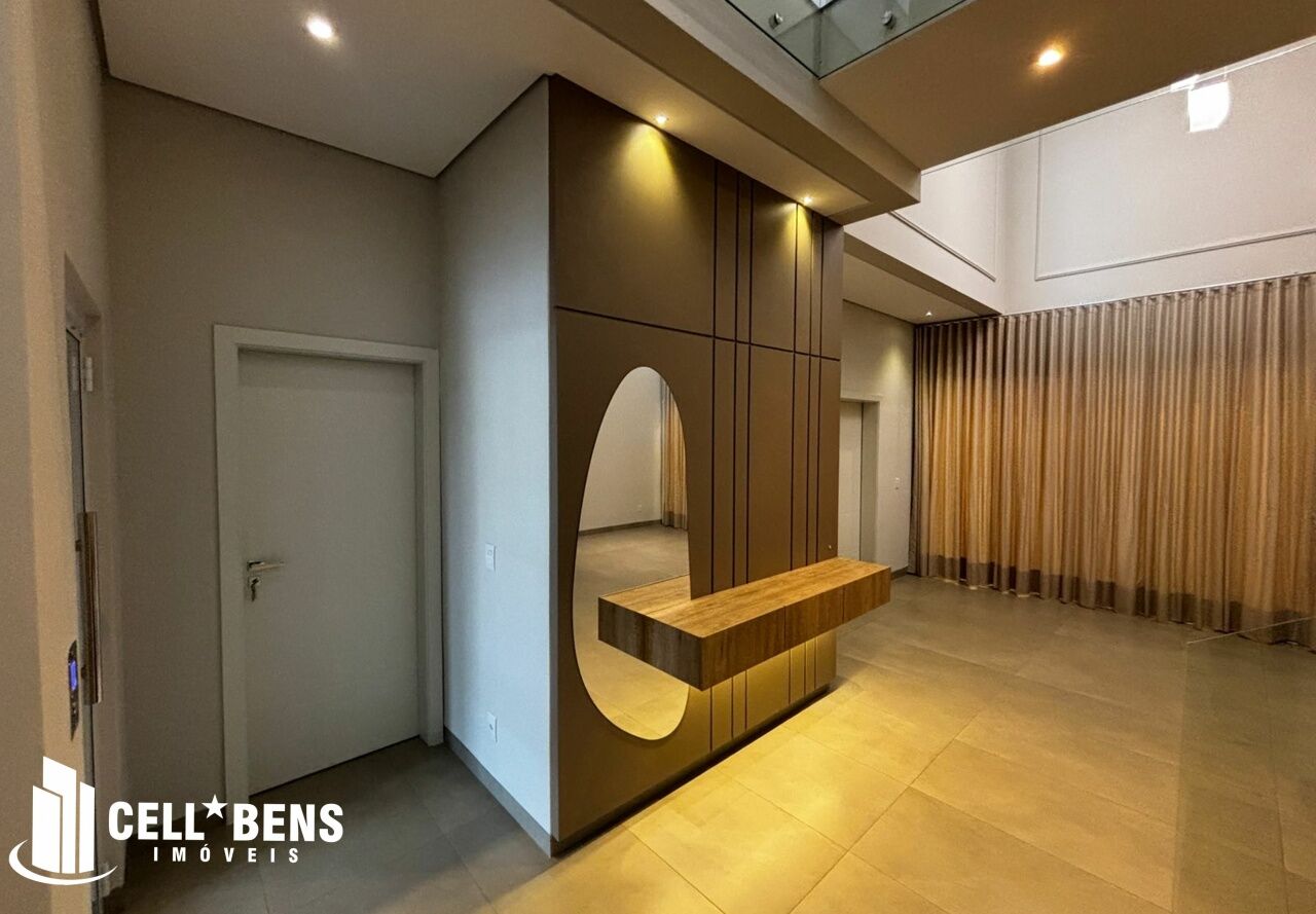 Lindo sobrado possui home privativo com cortina e ar, escritório com armário, ar e um WC, living com pé direito alto, com fechamento com portas de vidro com cortina, elevador panorâmico, 3 dormitórios com cortina, ar, armário e todos suítes com janela automatizada e uma súite master, roupeiro e sacada com vista para a Av. JK., cozinha com armários planejados, micro ondas, forno, cooktop, área gourmet com armário, churrasqueira, cervejeira, mesa de sinuca e de ping pong, banheiro social. Área de serviço com armários e com entrada independente. Externo conta com piscina, área verde, entrada independente para funcionários e conta com armário externo e garagem p/ 4 carros. Condomínio oferece área verde, campo de futebol, segurança 24hs, academia, piscina, playground, praça temática, quadra tênis e poliesportiva, quiosques com churrasqueiras, salão de festas, salão de jogos e solarium.
