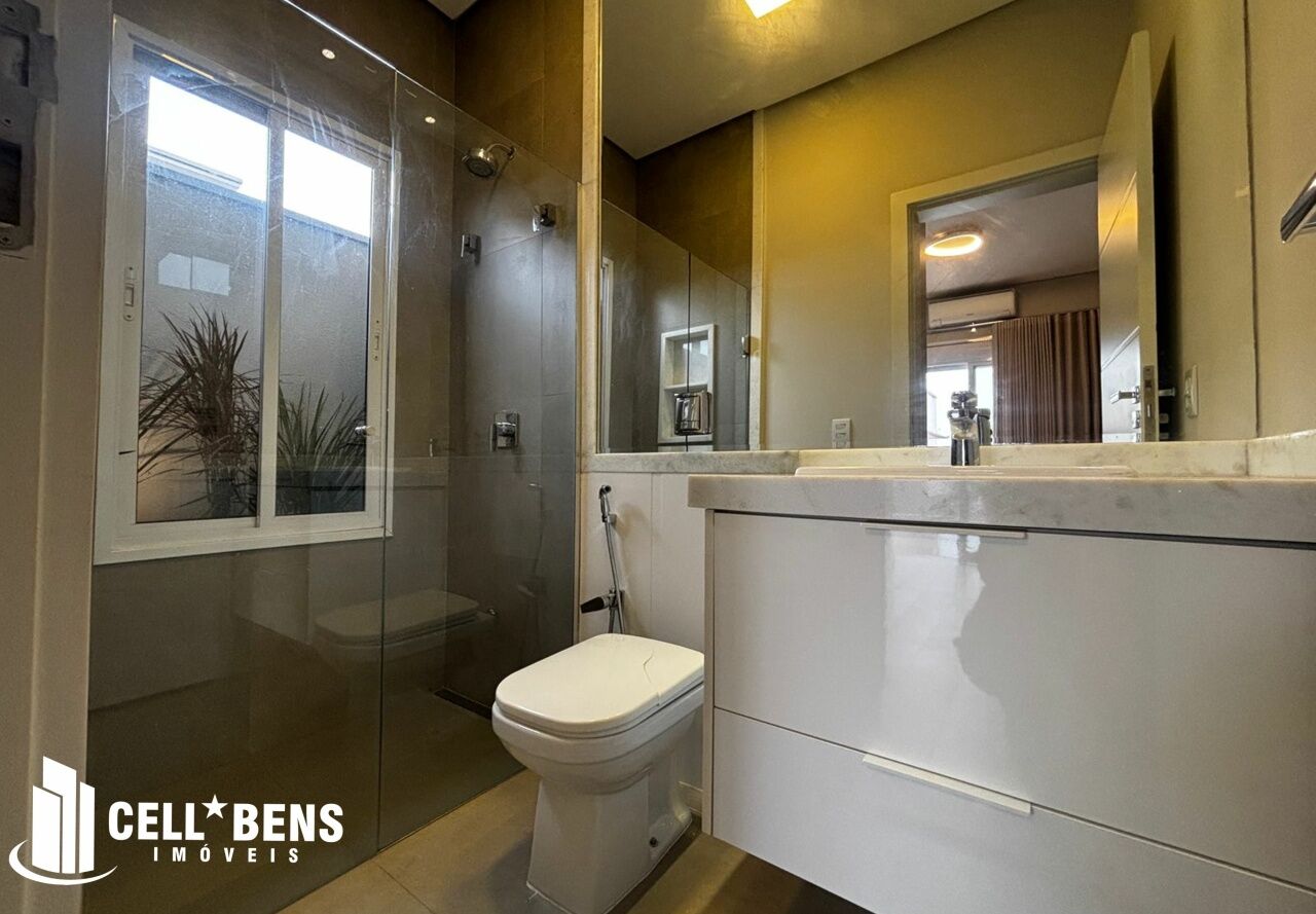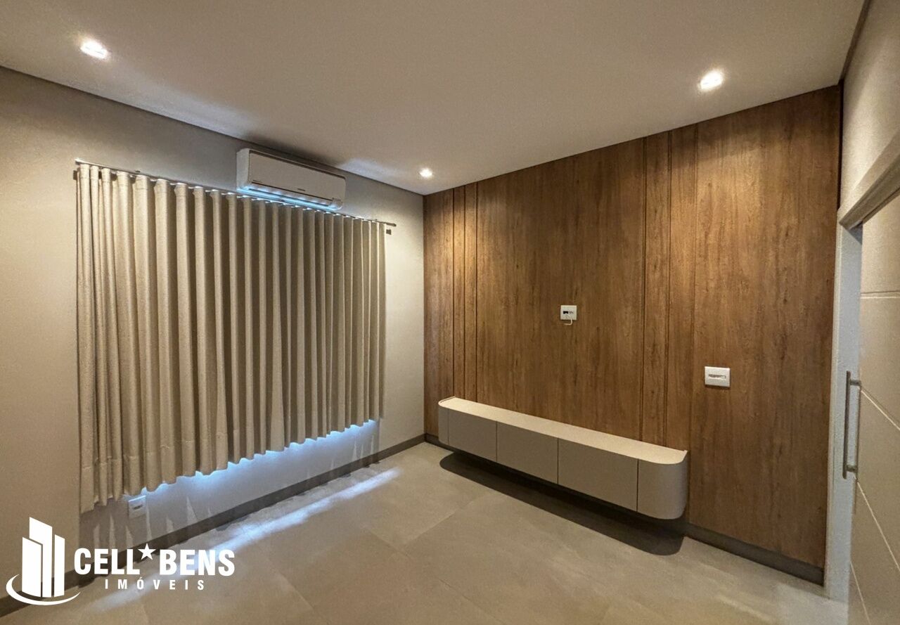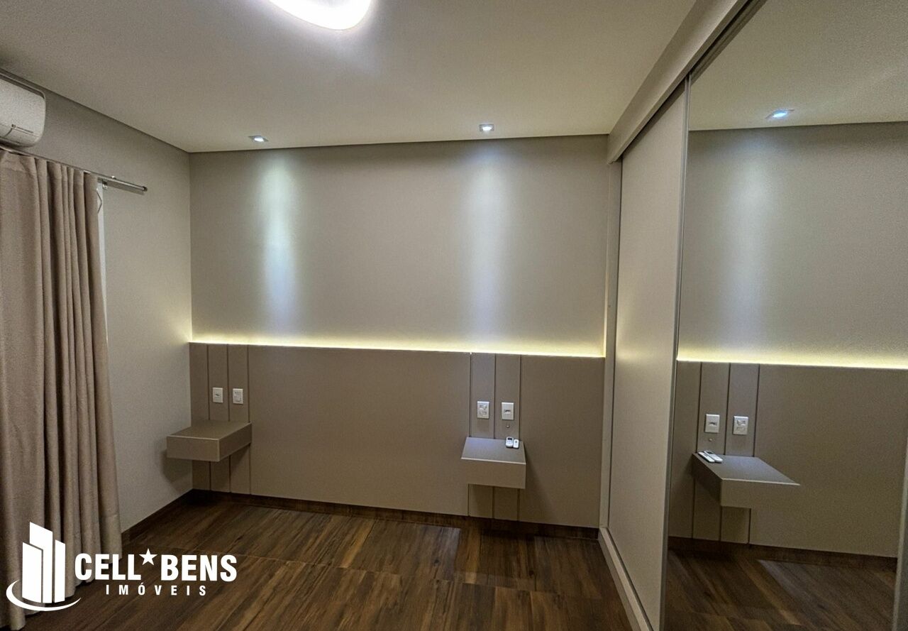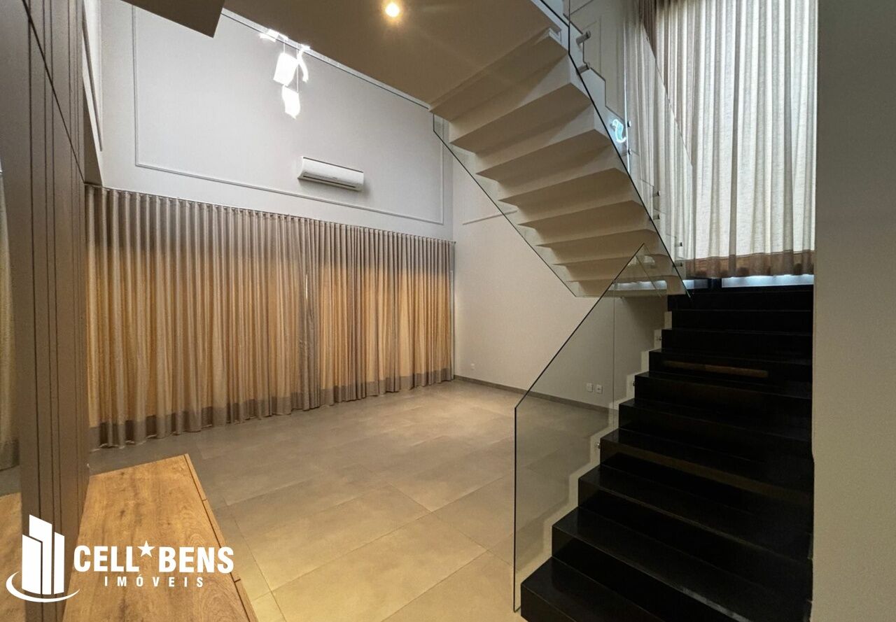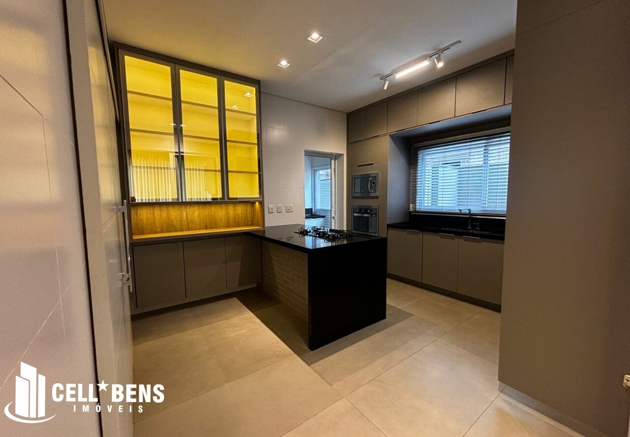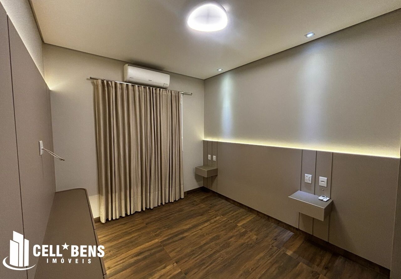 Lindo sobrado possui home privativo com cortina e ar, escritório com armário, ar e um WC, living com pé direito alto, com fechamento com portas de vidro com cortina, elevador panorâmico, 3 dormitórios com cortina, ar, armário e todos suítes com janela automatizada e uma súite master, roupeiro e sacada com vista para a Av. JK., cozinha com armários planejados, micro ondas, forno, cooktop, área gourmet com armário, churrasqueira, cervejeira, mesa de sinuca e de ping pong, banheiro social. Área de serviço com armários e com entrada independente. Externo conta com piscina, área verde, entrada independente para funcionários e conta com armário externo e garagem p/ 4 carros. Condomínio oferece área verde, campo de futebol, segurança 24hs, academia, piscina, playground, praça temática, quadra tênis e poliesportiva, quiosques com churrasqueiras, salão de festas, salão de jogos e solarium.