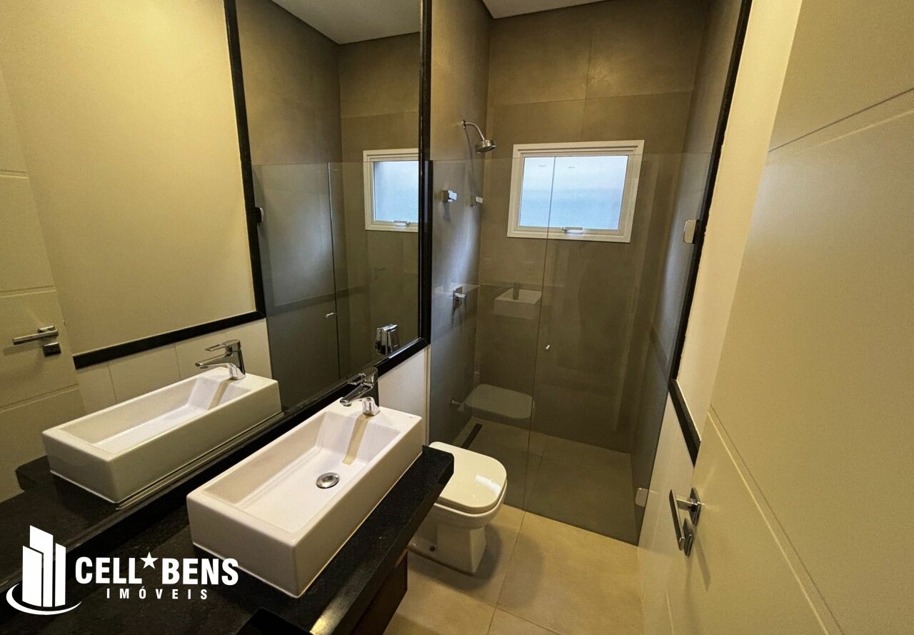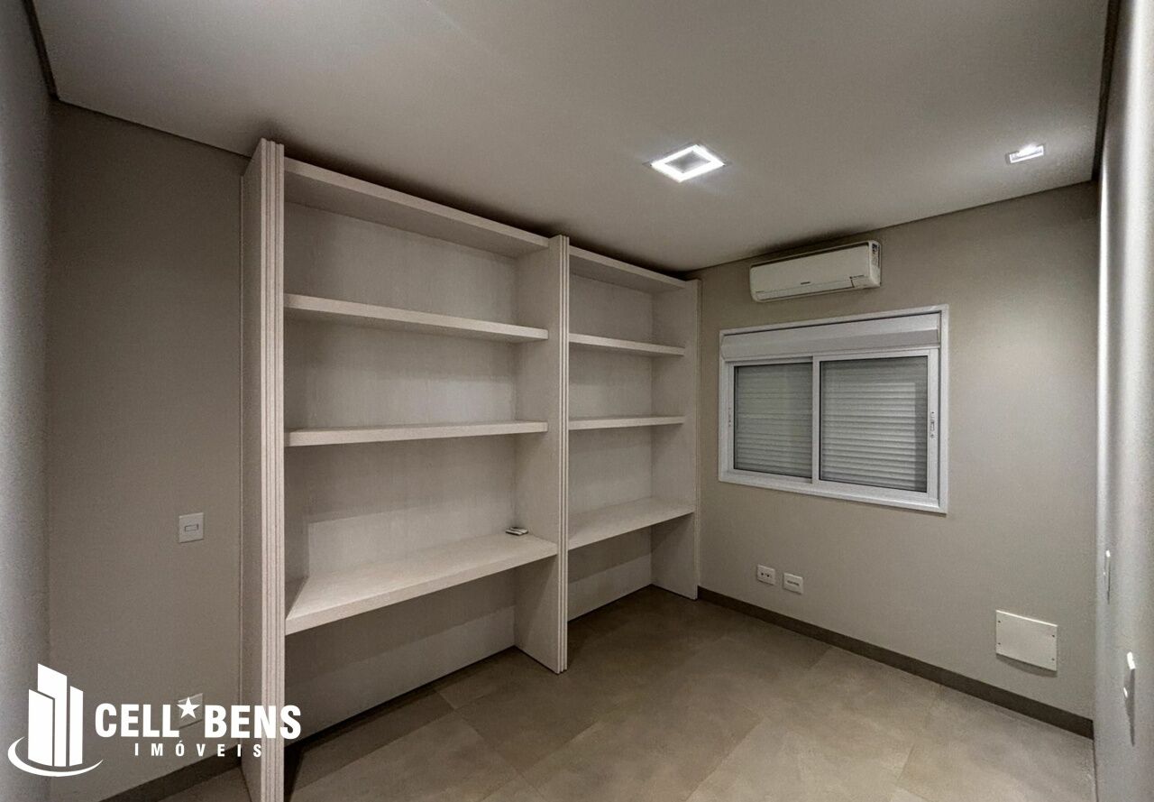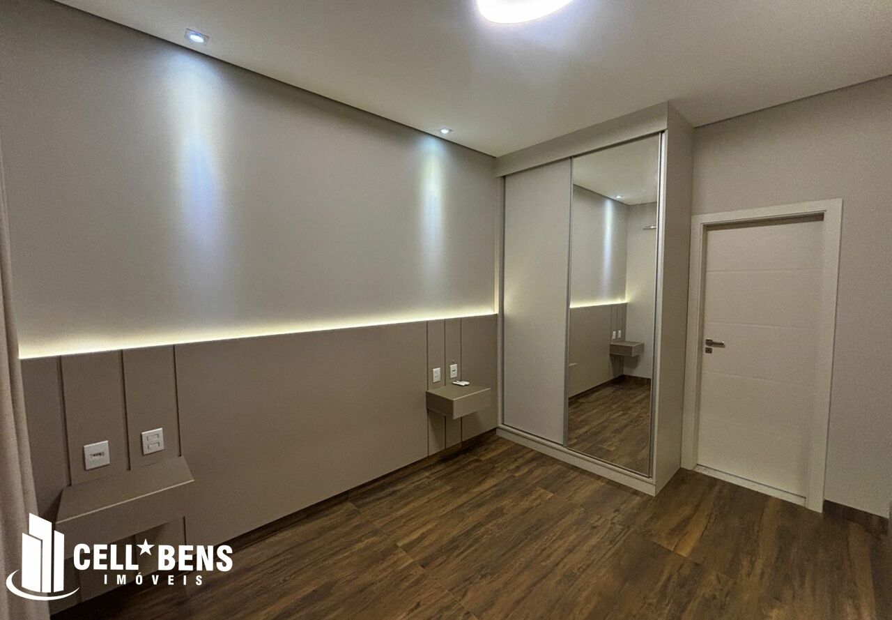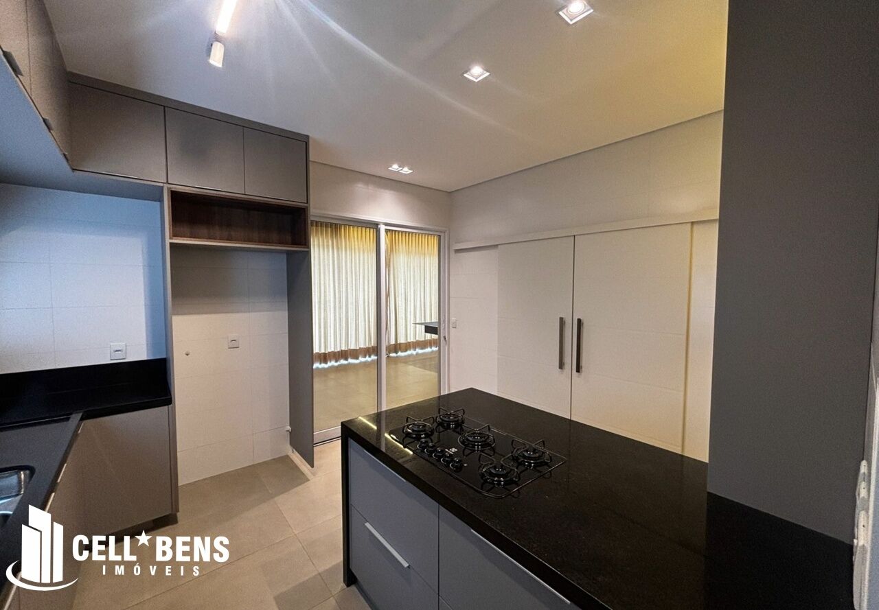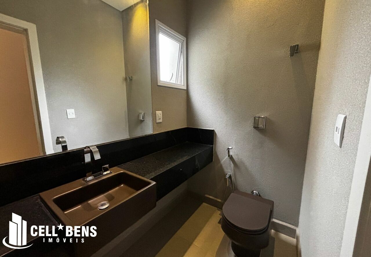 Lindo sobrado possui home privativo com cortina e ar, escritório com armário, ar e um WC, living com pé direito alto, com fechamento com portas de vidro com cortina, elevador panorâmico, 3 dormitórios com cortina, ar, armário e todos suítes com janela automatizada e uma súite master, roupeiro e sacada com vista para a Av. JK., cozinha com armários planejados, micro ondas, forno, cooktop, área gourmet com armário, churrasqueira, cervejeira, mesa de sinuca e de ping pong, banheiro social. Área de serviço com armários e com entrada independente. Externo conta com piscina, área verde, entrada independente para funcionários e conta com armário externo e garagem p/ 4 carros. Condomínio oferece área verde, campo de futebol, segurança 24hs, academia, piscina, playground, praça temática, quadra tênis e poliesportiva, quiosques com churrasqueiras, salão de festas, salão de jogos e solarium.